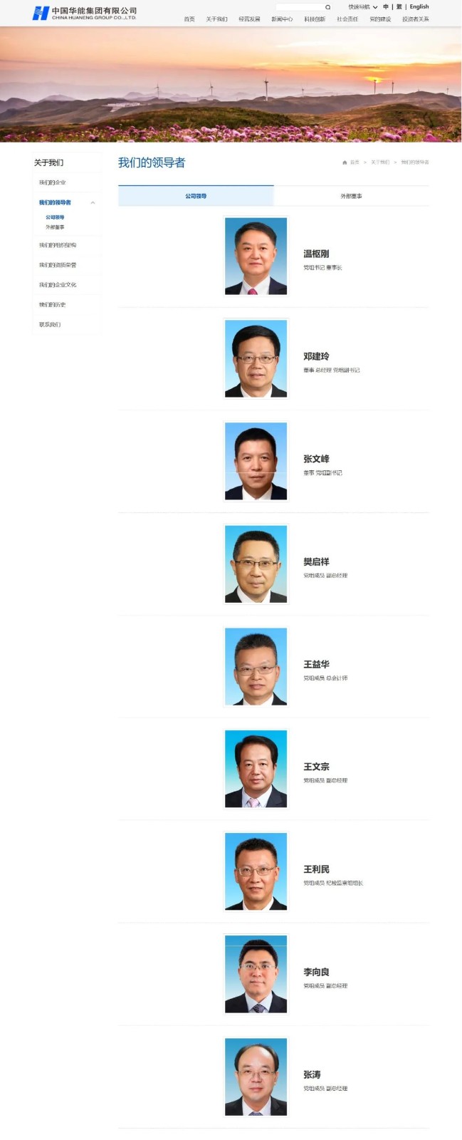 中国华能集团有限公司(以下简称“中国华能”)领导层调整。