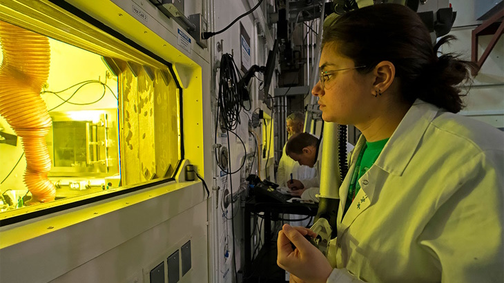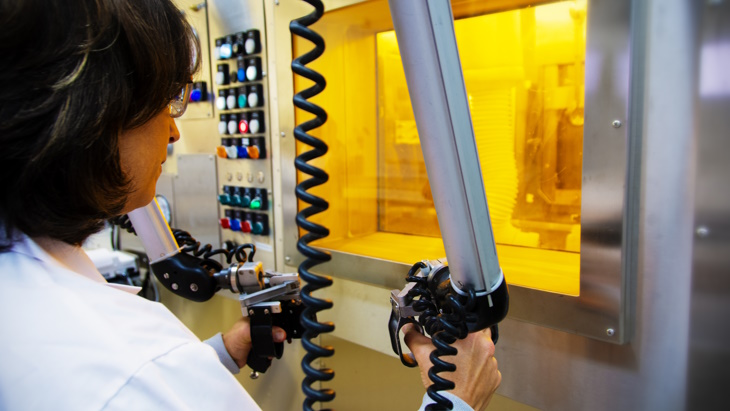 技术人员在生产Mo-99的热室中使用机械手(图片:Laurentis)