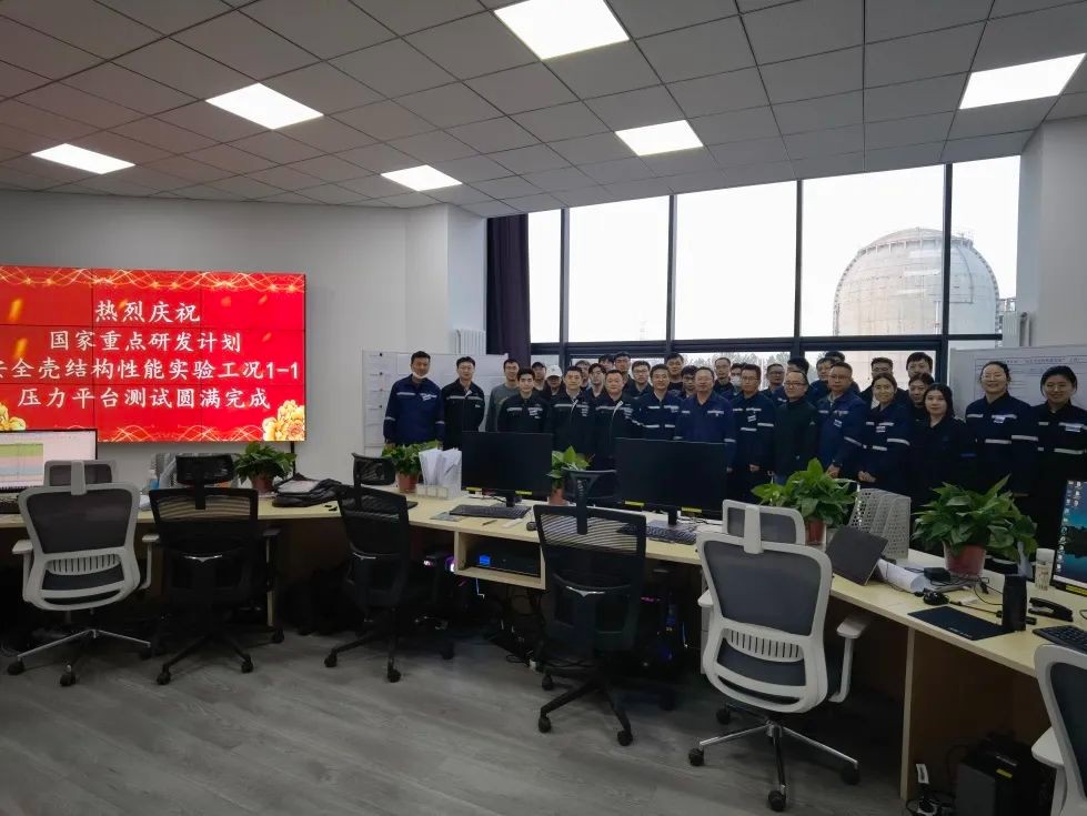 本次试验由中核工程和哈尔滨工业大学联合开展,携手北京建筑工程研究院等多家先进设备供应商共同实施。中核工程科学技术委员会,先进院创新中心、结构中心、研发中心,核工程院建筑结构所,哈工大空间结构研究中心组成了整个大壳结构性能试验技术队伍,大家攻坚克难,勇攀科研高峰。试验团队为大型安全壳结构施工建设、系统性能监测、泄漏率监测等关键技术带来了突破,填补了国际上大型安全壳模型热压耦合加载试验数据方面的空白,为严重事故下安全壳系统性能全面提升、“华龙一号”后续新一代核电技术研发和在役核电厂安全运行提供了有力支撑,助力实现核能强国战略。