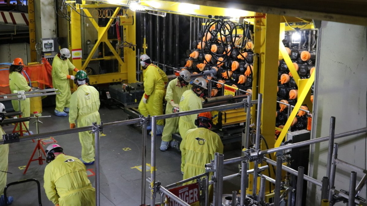 反应堆拆卸正在进行中,随后将拆除所有反应堆内部部件,包括约480根排管和压力管。