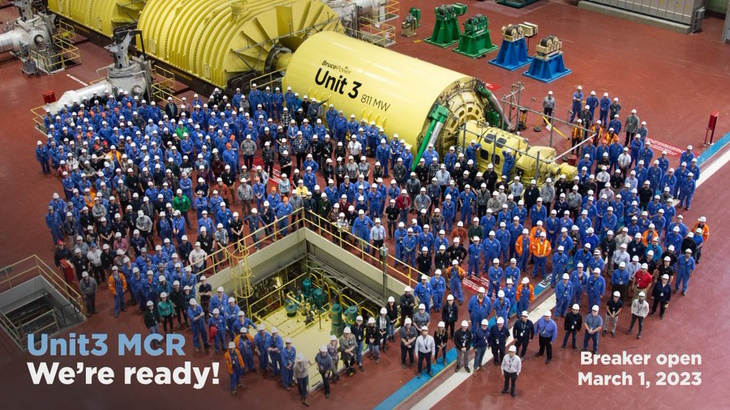 布鲁斯核电站3号机组于3月1日从断开电网,这一步骤被称为“断路器断开”,准备翻修工作(图源:布鲁斯电力)