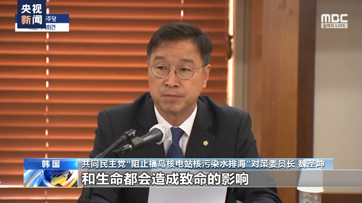 韩国共同民主党“阻止福岛核电站核污染水排海”对策委员长 魏圣坤:发生堆芯熔毁事故的核电站的污染水排放入海是没有先例的,对现在和未来世代人类的健康和生命都会造成致命的影响。