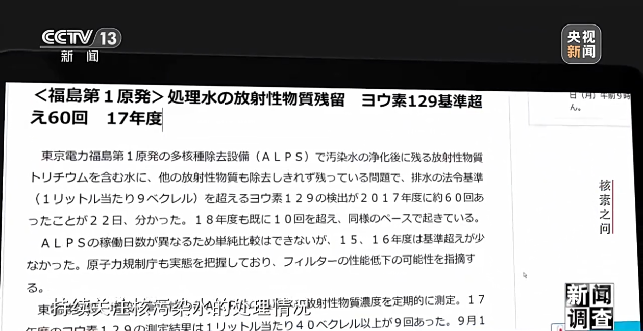 王殳凹:但是对于日本的核污染水的这样一个问题,现在它的监管是不公开不透明的。所以一旦这个核污染水排海,有多少非氚的这种放射性同位素排到海洋里面去,我们是不掌握这样的信息的。