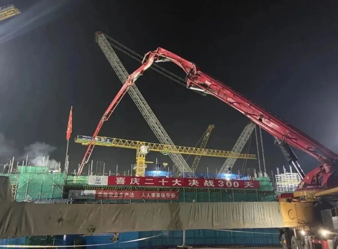 “玲龙一号”常规岛汽轮机筏基第一罐混凝土浇筑,标志着常规岛土建工程全面开工。——2021.11.28