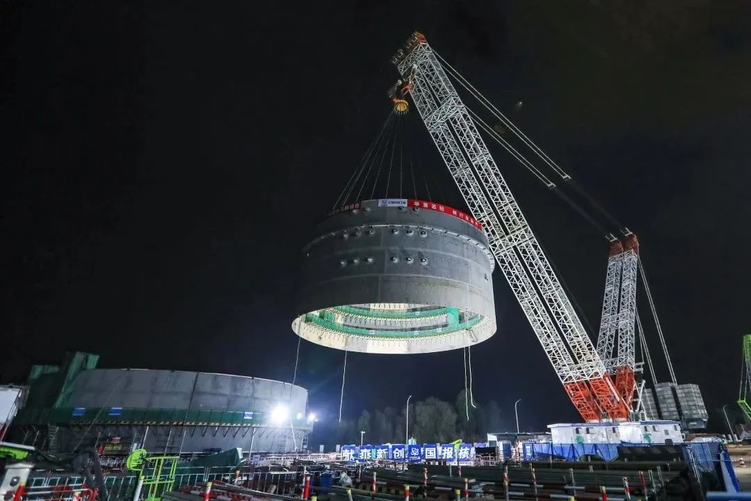“玲龙一号” 核岛钢制安全壳(CV)上部筒体吊装就位。——2022.07.06