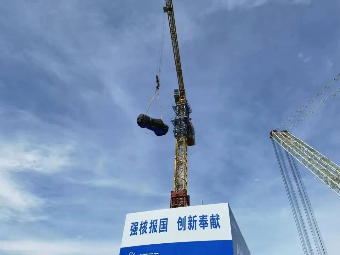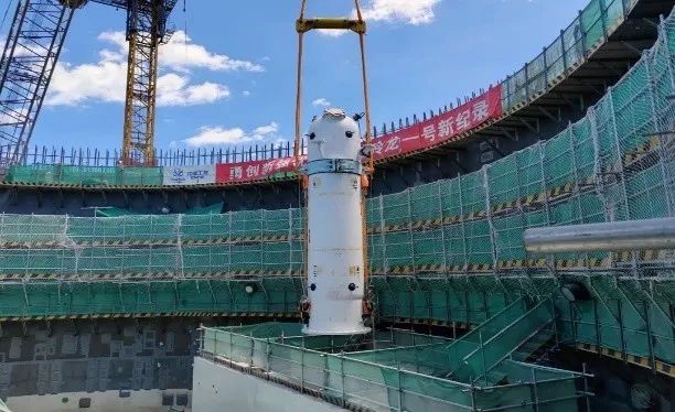 “玲龙一号”首台主系统设备“稳压器”顺利吊装就位。——2023.07.06