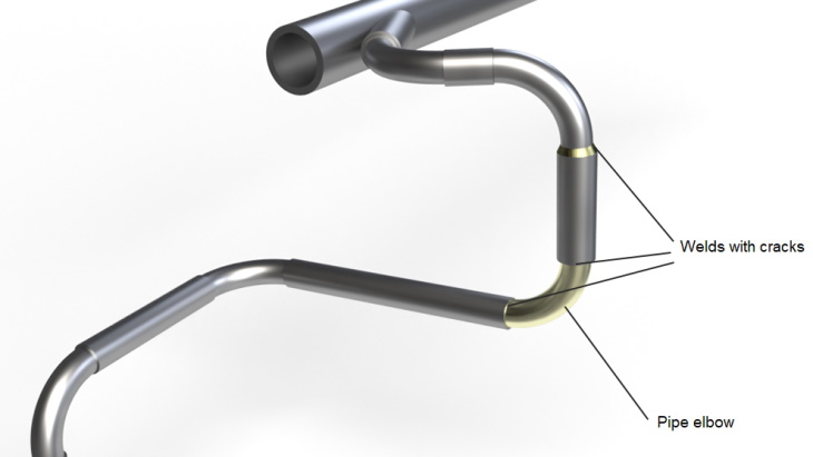 热分层,即管线内较热和较冷流体的分离,在U形管道上产生了高应力,导致焊缝附近的弯管破裂。