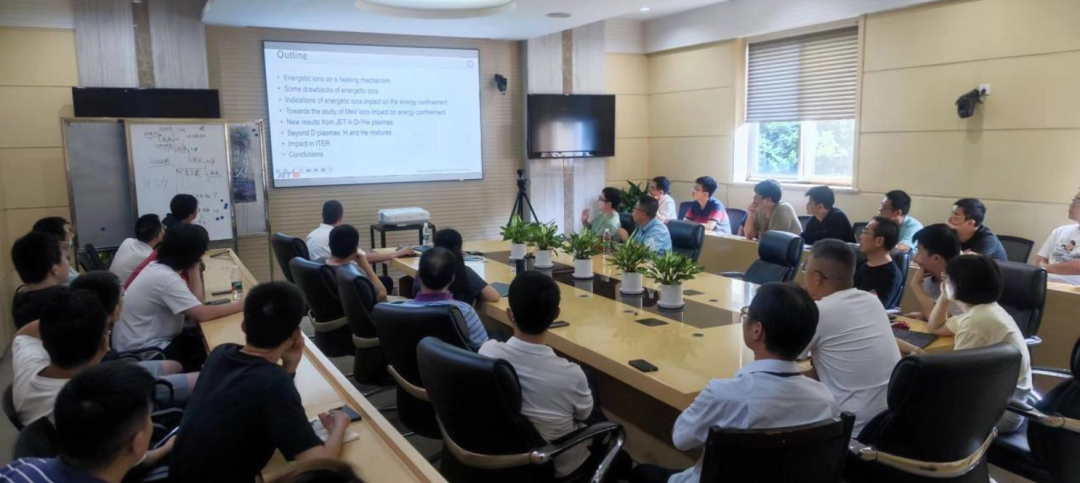 访问期间,Garcia教授围绕高能粒子相关物理等内容做了专题报告,就高约束先进运行模式、高能粒子作用下的湍流输运、杂质输运、氘氚运行加料、台基物理、集成模拟等多个研究方向与西物院科研人员开展深入的交流与讨论。