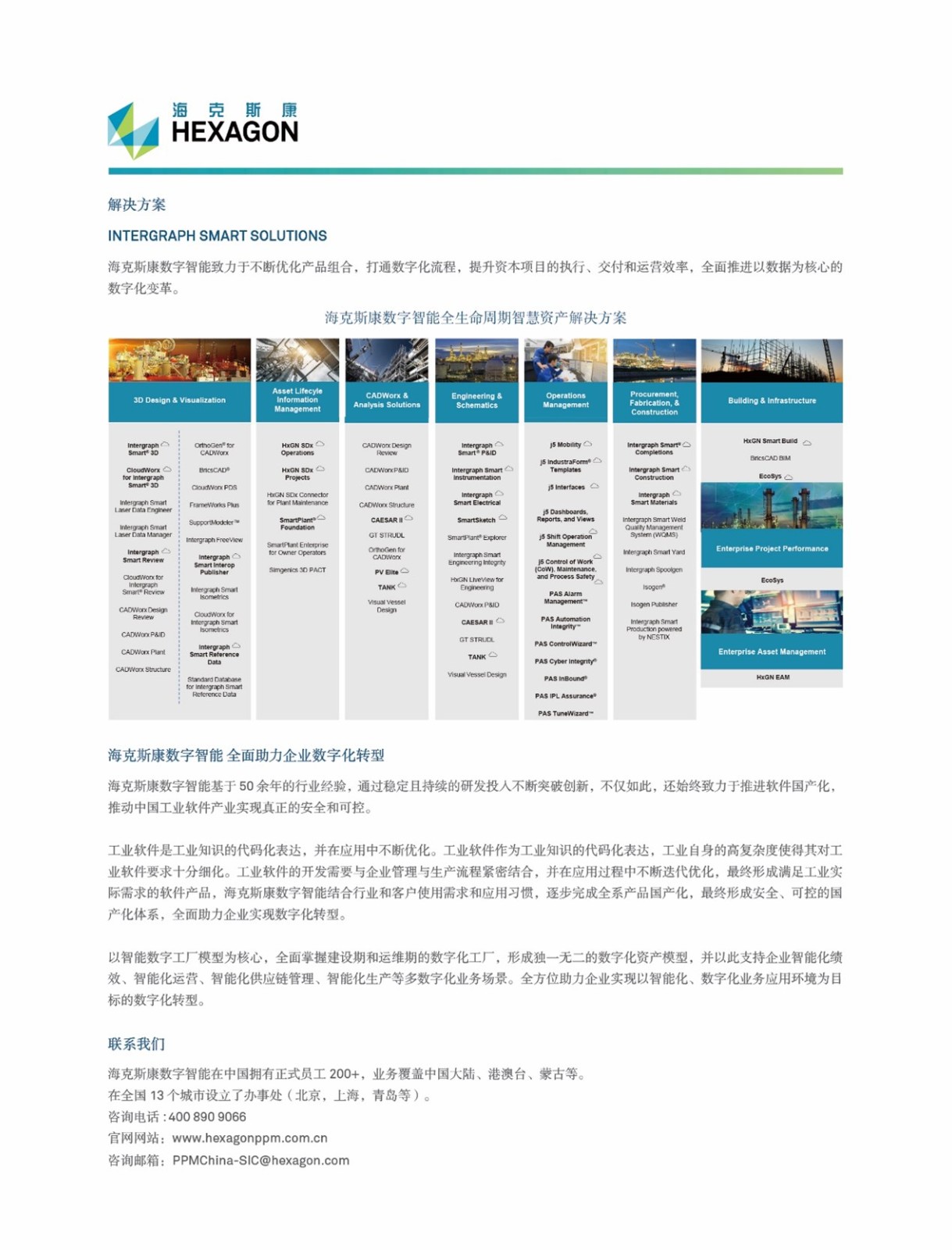海克斯康数字智能为各类电厂提供面向全生命周期的数字化解决方案,从前期工程设计、建造,到后期运维、延寿/退役,所提供的产品线贯穿项目各个阶段,全面保障实现工程过程智能化,并为高质量且安全的工厂运营提供技术支撑。