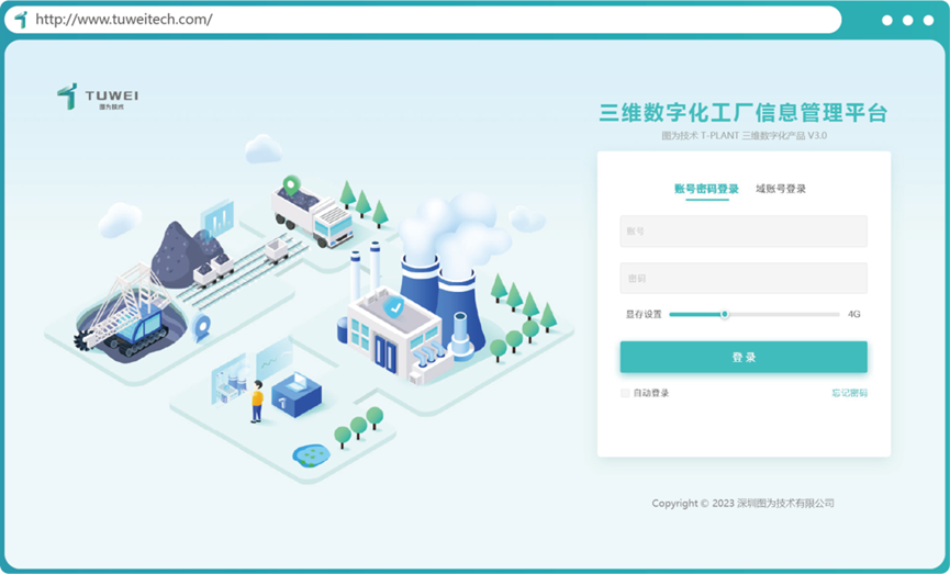 (纯web端三维数字化工厂信息管理平台T-Plant登录界面)