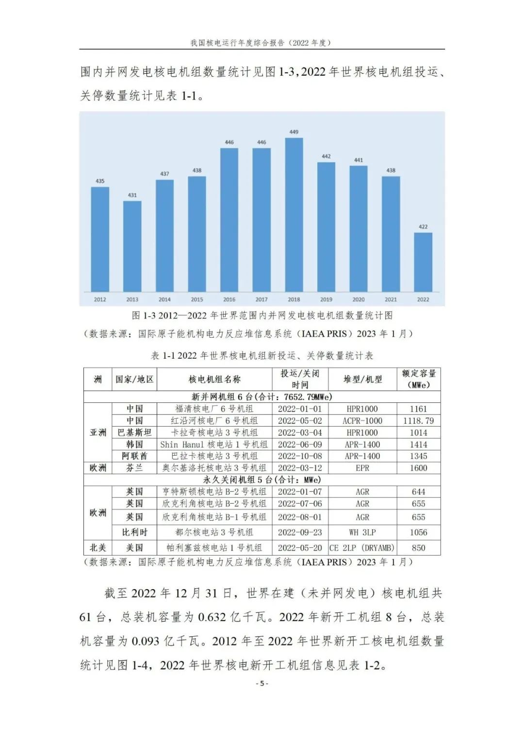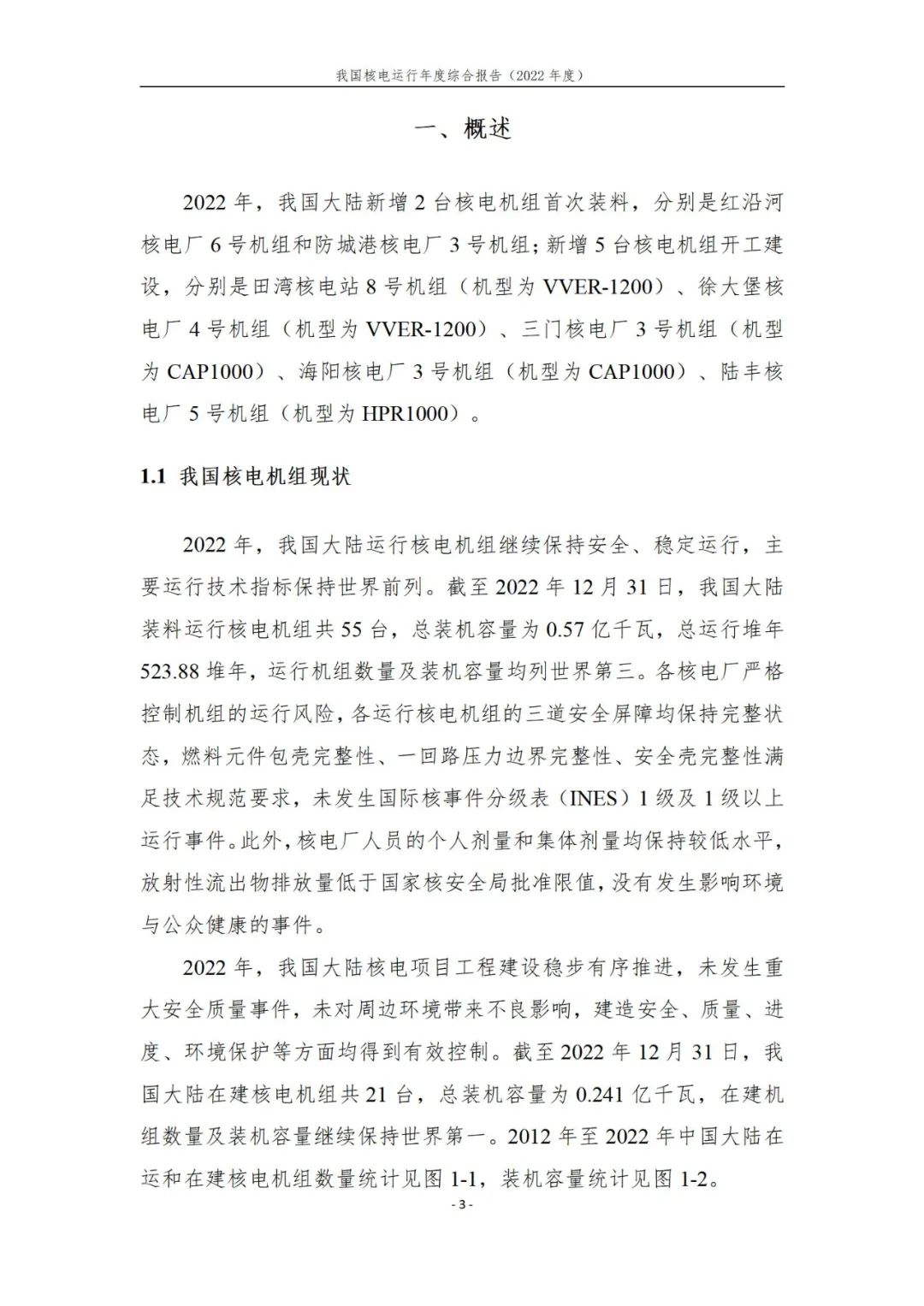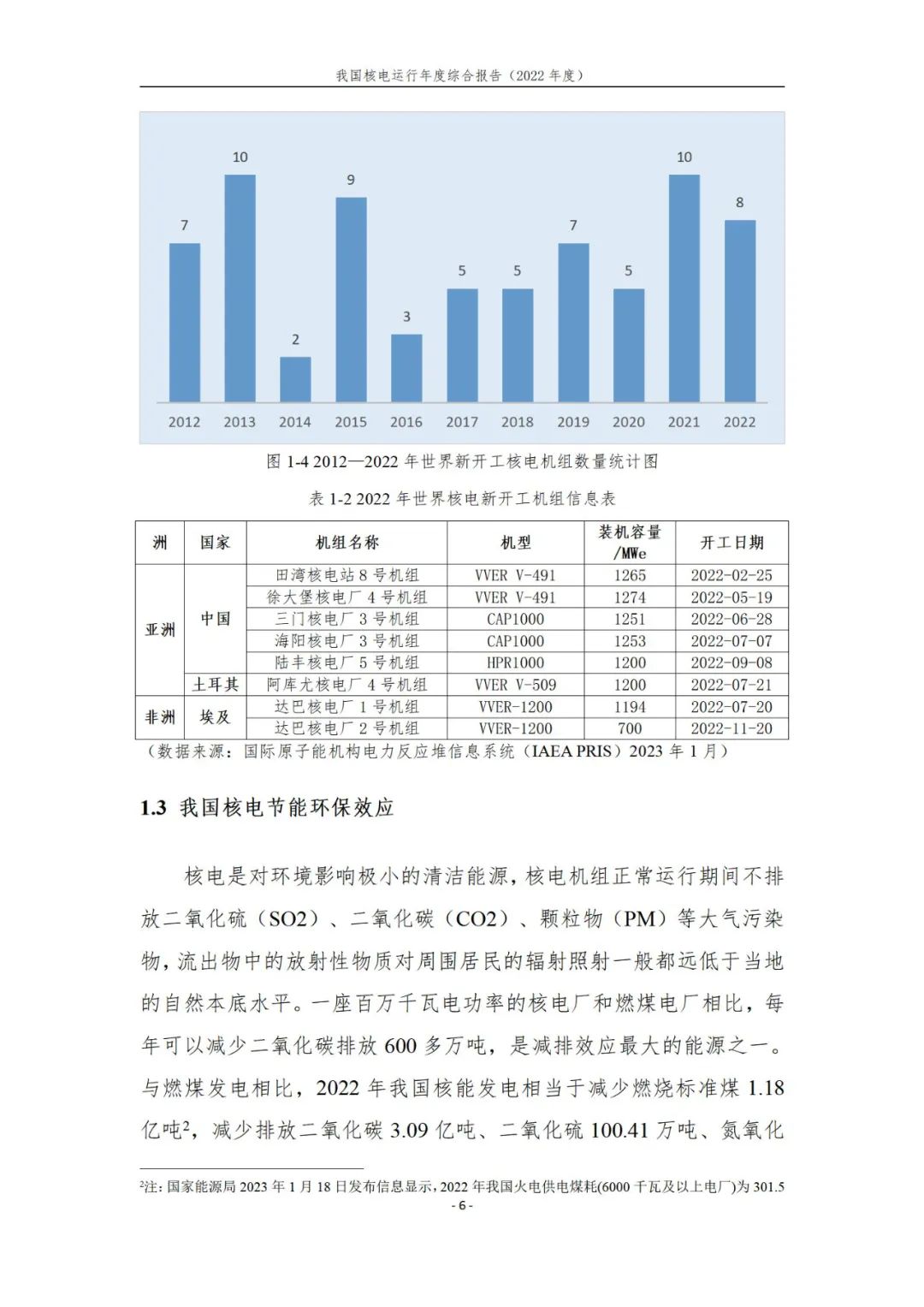 2022年,我国大陆新增2台核电机组首次装料,分别是红沿河核电厂6号机组和防城港核电厂3号机组。