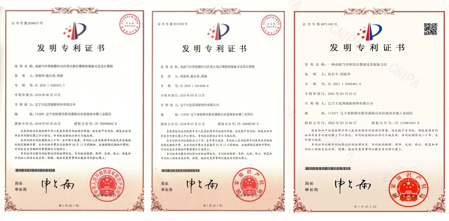 2012-2016年,公司承担编号为2018ZX06903018的国家重大科技专项“大型先进压水堆及高温气冷堆”子课题《高温气冷堆核燃料元件用石墨粉生产技术研究》,2016-2018年期间,该项目分别通过了清华大学,中核北方,华能集团,中国核行业协会评审,2018年10月,通过国家能源局重大专项评审,技术国内领先,达到国际水平。