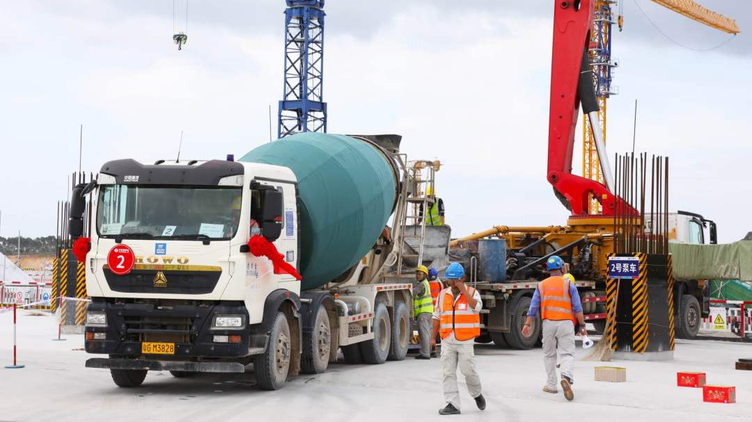 8月15日,1号机组现场机器轰鸣、吊臂起降、一片繁忙。15时整,随着一声令下,混凝土浇筑正式启动,1号常规岛顺利实现第一罐混凝土浇筑(FCD)目标。