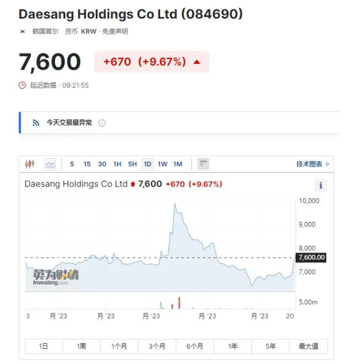 22日,Daesang Holdings等与盐相关的股票在韩国大涨,市场预期消费者将在日本将处理过的废水从福岛核电站排放出去之前寻求储存海盐。Insan涨幅一度高达30%,为6月12日以来最大涨幅;Daesang Holdings一度上涨9%,为6月16日以来最大涨幅;Boratr涨24%,Pulmuone涨4.4%,Sempio涨12%。