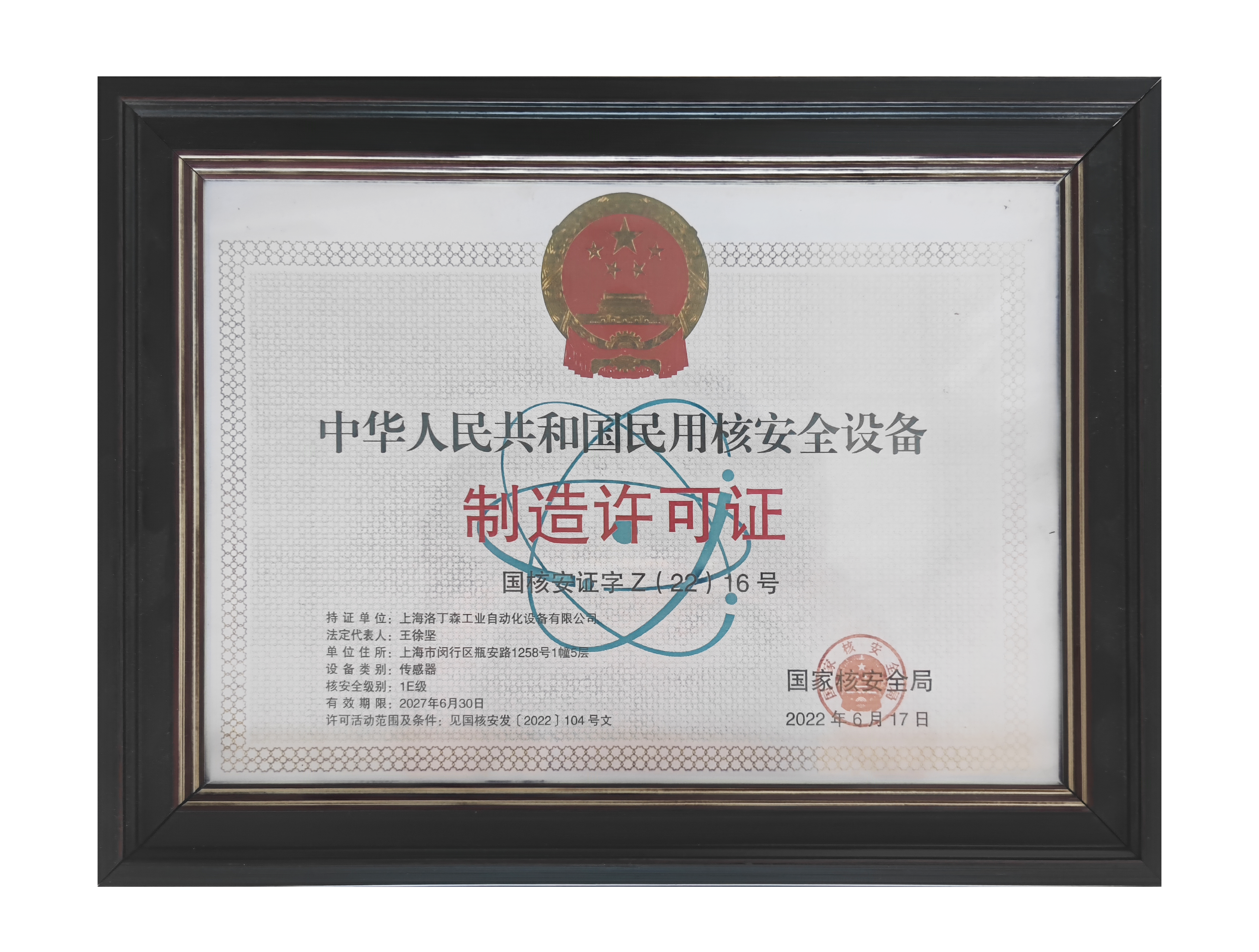上海洛丁森工业自动化设备有限公司(以下简称为洛丁森)是一家专业从事工业自动化传感器和仪器,特别是高精度智能压力、差压变送器及核安全级压力、差压变送器的设计、制造、销售、技术服务为一体的国家级专精特新“小巨人”企业。公司拥有ISO9001、ISO14001、ISO45001三体系认证,产品获得包括NEPSI、ATEX、IECEX、SIL2、CE、3A、EAC、Rohs等多项国内外认证,并拥有国家民用核安全级压力变送器设计、制造许可证。