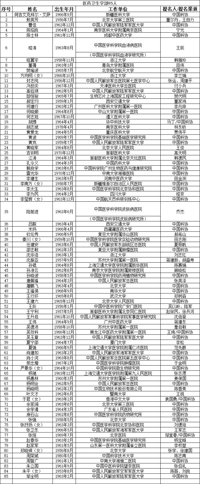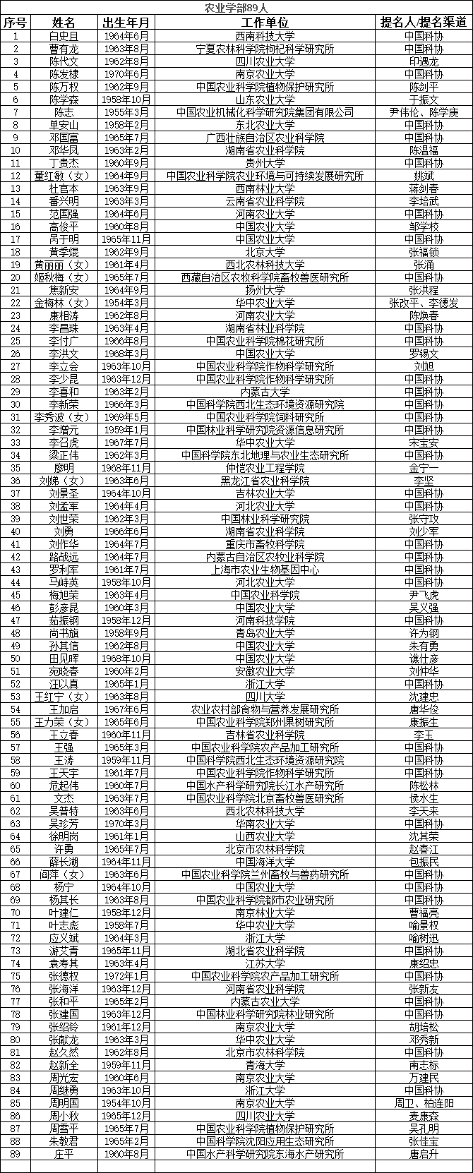 中国工程院2023年院士增选有效候选人名单