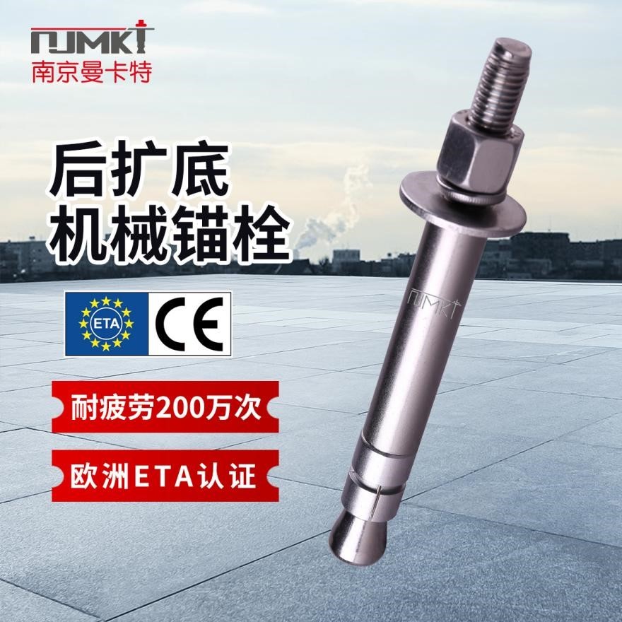 曼卡特后扩底机械锚栓,是由锁键、套管、螺杆、弹垫、平垫、螺母组成的一种金属机械锚栓。产品通过国检耐疲劳200万次以上,国检3100小时盐雾未生锈。通过国检抗震防松认证和欧盟“ETA”机构组织的性能测试认证。