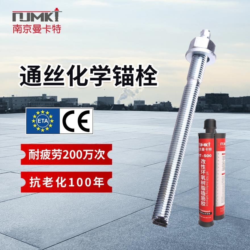 曼卡特通丝化学锚栓,是由平垫,螺母,螺杆组成的一种金属化学锚栓,配合植筋胶使用。高强粘接力,适用于大尺寸钢筋、螺杆,效果如同预埋;产品具有杰出的耐久性、抗焊性。产品通过抗疲劳200万次试验,耐火性能120min测试,通过欧盟“ETA”机构组织的性能测试认证。