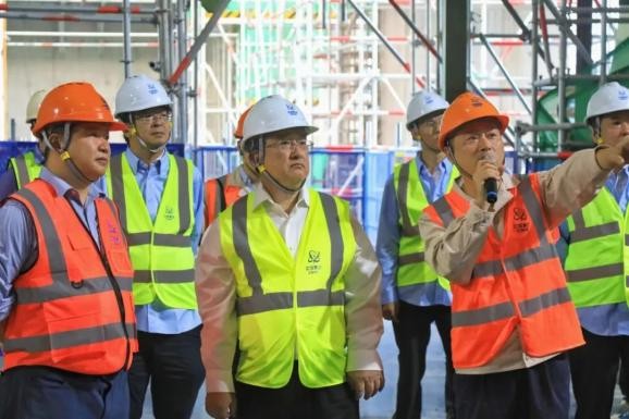 在辽宁核电,余剑锋一行实地考察了徐大堡核电项目1号机组、3号机组施工现场和智慧工地指挥中心,详细了解了项目工程现场施工进展情况,听取了辽宁核电经营管理、3/4号机组建设以及1/2号机组筹备等方面情况的汇报。