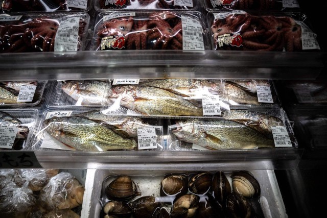 当地时间2023年8月31日,日本福岛县相马市,超市内来自福岛县的海鲜。