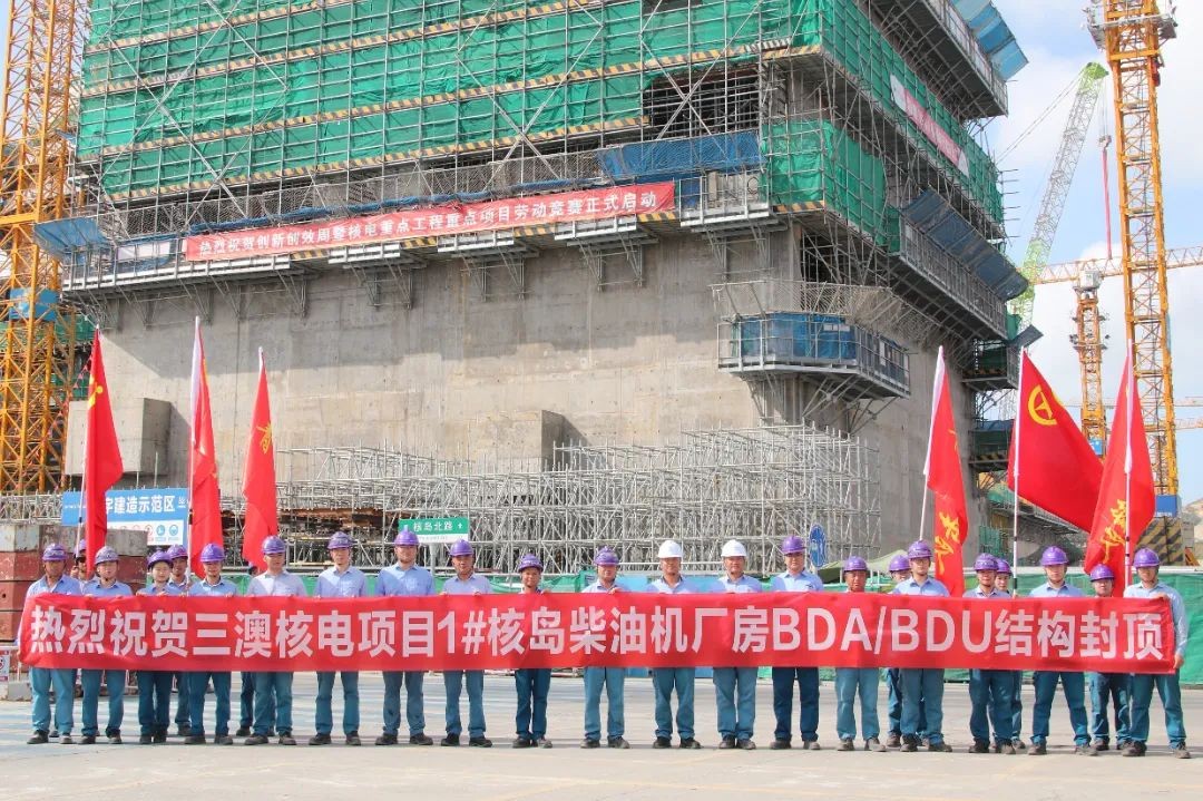 9月20日11时18分,由中核华兴承建的中广核浙江三澳核电项目1BDA/U柴油机厂房主体结构顺利完成浇筑。这是1号机组周边厂房第一个实现封顶的子项,至此,正式拉开了1号机组周边厂房年度结构封顶的序幕。