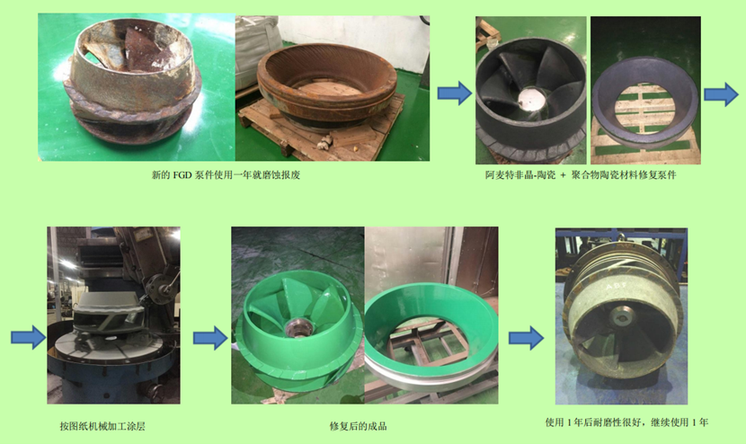 技术的民用产业化,成功培育开发了火电厂脱硫泵修复防磨技术、蒸汽轮机叶片防磨技术、水电站水轮机防磨技术、海洋潜油电泵防磨技术、管道弯头内壁防磨技术等一批主导和优势的金属表面节能民用品。