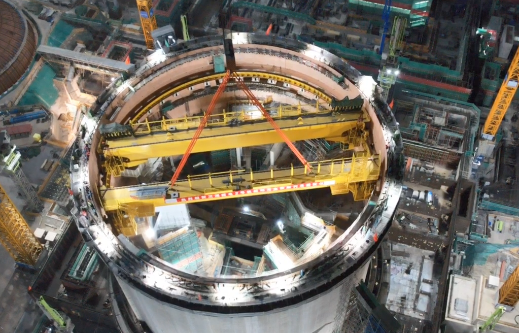 在三澳基地大团队的协同配合下,中核二三公司三澳项目部全体职工咬定目标、主动谋划、严格过程管控,充分吸收以往环吊施工经验和良好实践,优化施工逻辑和核心施工工序,采用先进工装,坚持精益创效,强化党建引领等措施,以开工即决战的心态,克服了组装工作量大、工期紧张、地面组装场地狭小、建安深度交叉作业等多重困难,最终于FCD+21实现环吊吊装工作。