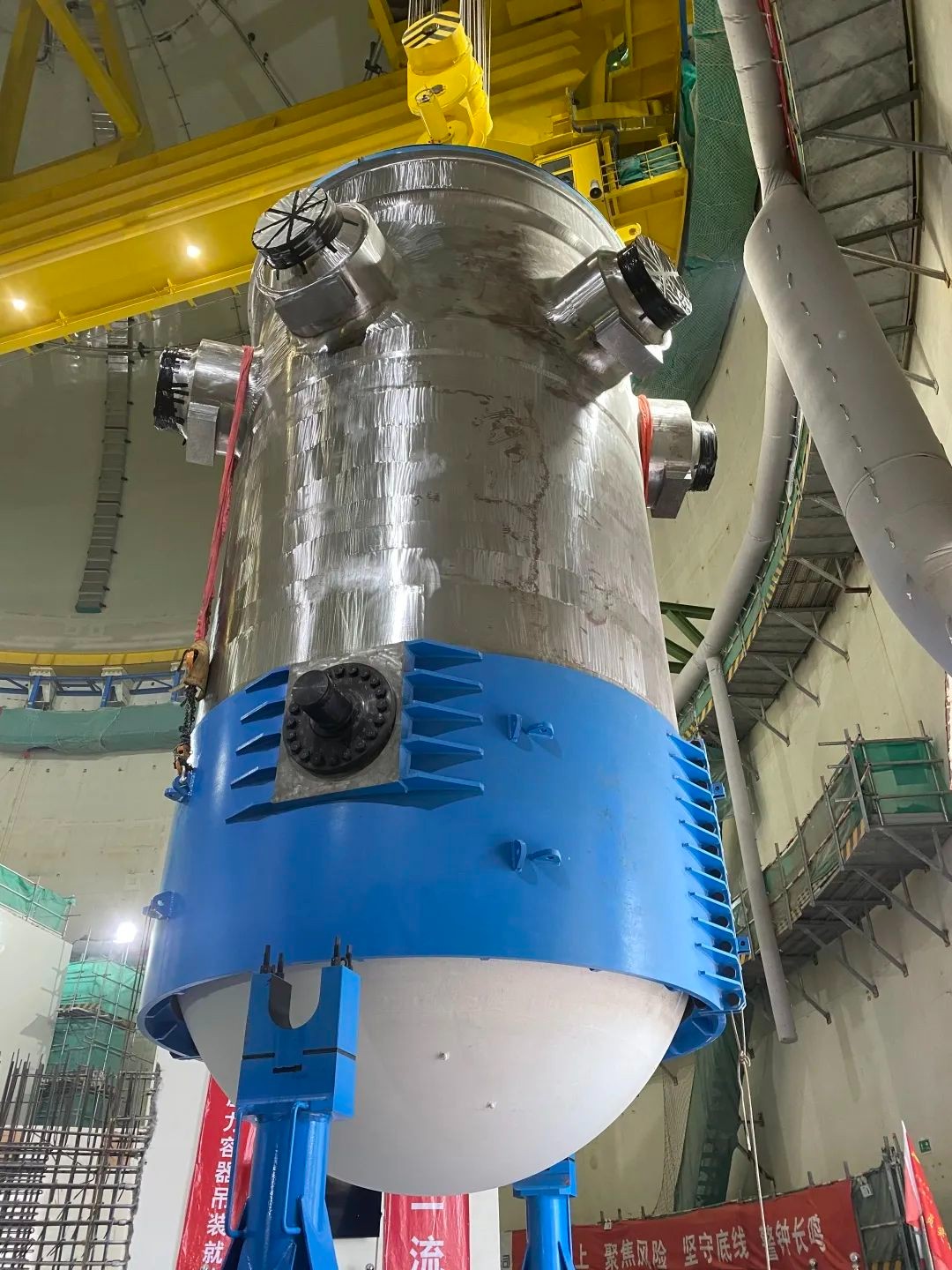 为确保压力容器吊装的顺利实现,海南核电施工管理团队精心组织统筹协调各方面资源,以问题导向和目标导向,深入一线班组了解并解决实际困难,以创新思维和科学策划,组织各参建单位优化施工逻辑,制定优化措施,同时严把“质量关和安全关”,组织相关单位进行多次沙盘推演,加强现场作业监督,全程监督高风险作业,确保压力容器吊装过程万无一失。