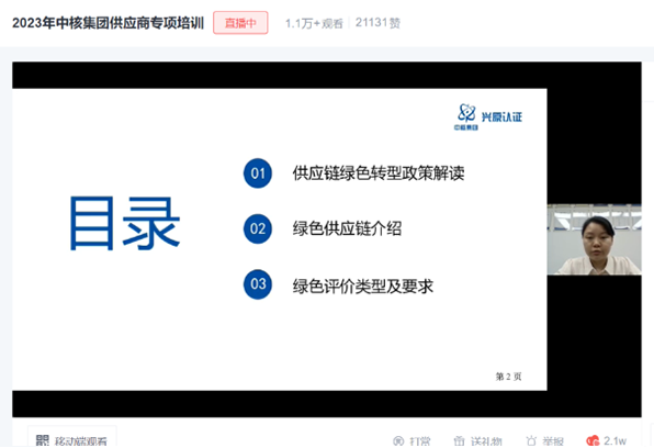 为提升中核集团产业链韧性和安全水平,积极打造精益化、协同化、国际化、智慧化、绿色化的现代产业链,本次培训为广大供应商带来供应链绿色转型政策、绿色供应链、绿色评价类型及要求解读,培育新增长点,为今后深化拓展合作奠定了坚实基础。