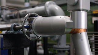 该机器人集多自由度机械臂、可见光相机、超声波测距、激光传感器、机器学习等诸多新技术门类于一身,实现阀门操作、智能巡检功能的两位一体。在控制系统、传感器及机械结构的精密配合下,实现控制命令的准确执行,能够精确的定位阀门,并将阀门操作至指定开度,实现制水的智能化。