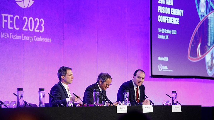 该活动自 1984 年以来首次在英国举行,国际原子能机构总干事拉斐尔·马里亚诺·格罗西 (Rafael Mariano Grossi) 致开幕词,他首先祝愿即将闭幕的 JET(欧洲联合圆环会议)“40 周年快乐”。 ),“欧洲第一个氚实验,科学记录的打破者,一代代杰出科学家和工程师的培养者,以及国际合作的真正磁石”。