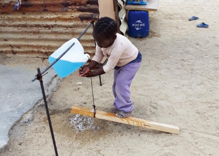 图为中核集团控股的罗辛铀矿为当地制作简易洗手消毒装置。(中核集团供图)