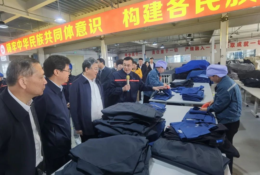 在宁夏同心(中核)清洁能源产业园,余剑锋先后参观了英利能源光伏组件全自动智慧化生产线、同心防护科技公司服装生产车间,详细了解了工艺流程、设施设备、企业党建和生产经营等情况,并听取了中核汇能引进中核热盐、上能电气等产业落地情况,充分肯定了中核集团“六新一体”新能源产业帮扶格局对同心县清洁能源产业链建设的引领作用。同时,他还鼓励当地职工要坚定发展信心,“幸福是奋斗出来的!”