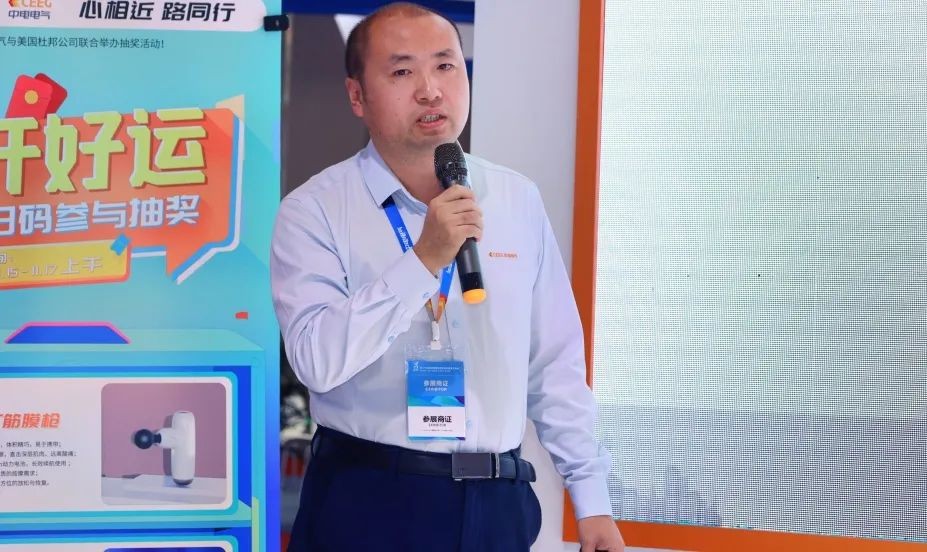 展会首日,中电电气精心准备了特色产品分享会。公司党委副书记连俊山、销售总监苏翔飞在分享会开幕式致辞。
