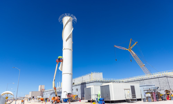 SSCVS 将与同样在建的一个新空气竖井协同工作。该竖井将更多的空气送入 2150 英尺深的 WIPP 地下贮存库,而 SSCVS 则将驱动空气通过贮存库、过滤空气并去除盐分,然后将其释放到环境中。新通风系统全面投入使用后,地下气流将从每分钟17万立方英尺增加到 54万立方英尺。增加的气流将允许同时进行废物地下放置、采掘和锚固活动。锚固活动可控制 WIPP 地下盐岩的移动,即所谓的盐蠕变。