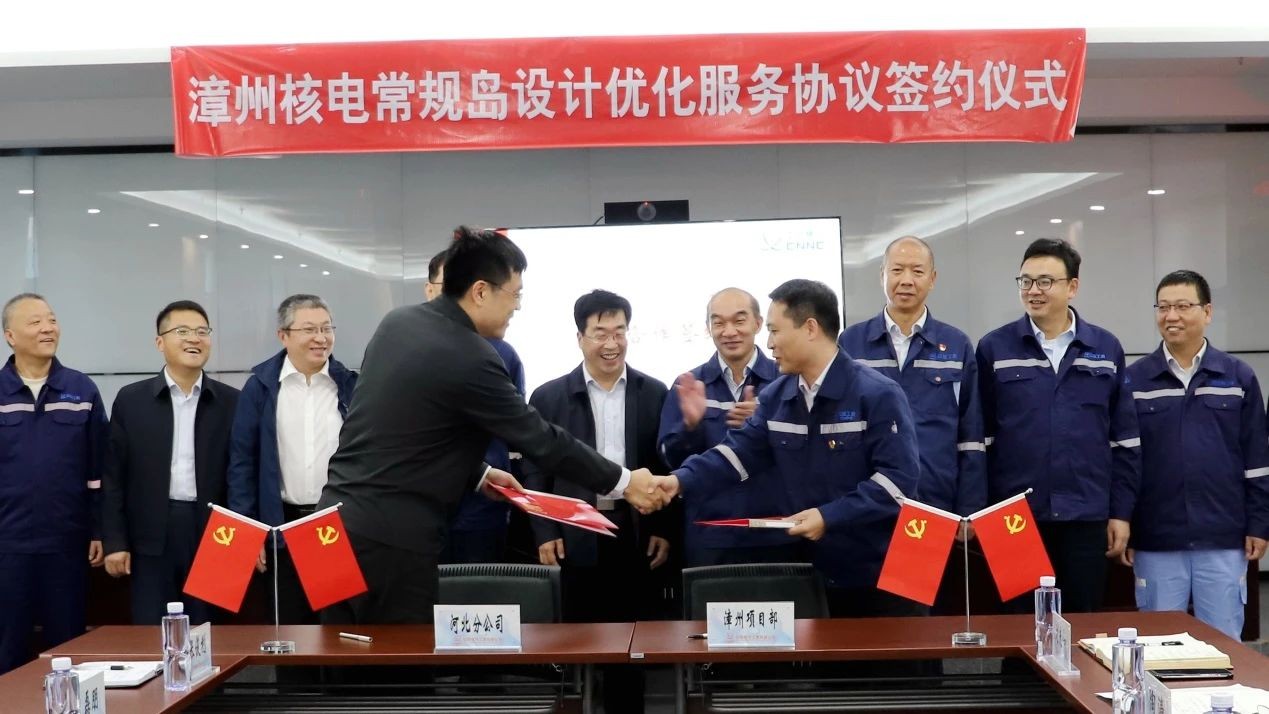 2023年11月25日,在漳州核电现场工程管理楼1203会议室举行漳州核电常规岛设计优化服务合作协议签约仪式。河北分公司党委书记、总经理卢春田、漳州项目部党委书记、总经理高建占,项目部班子成员、河北分公司、设计团队等相关人员出席了本次签约活动。