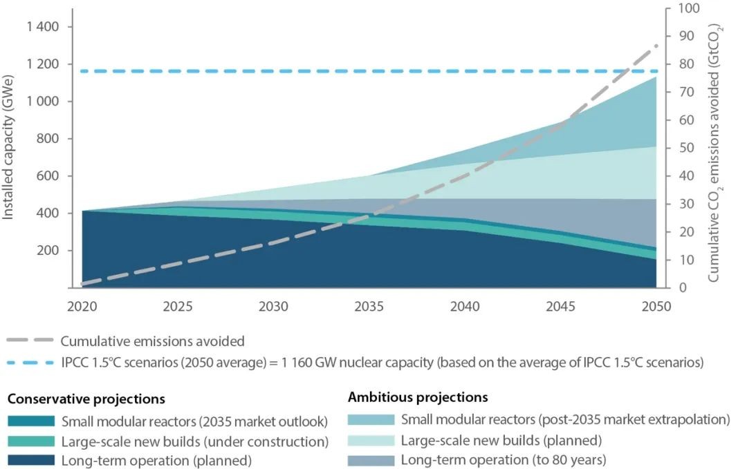 经合组织核能署(OECD-NEA)的1.5度情境下2050年全球核电装机预测。来源:OECD-NEA官网