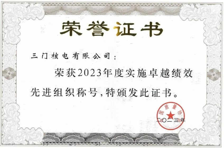 近年来,三门核电全面贯彻党的二十大精神,积极落实党中央、国务院《质量强国建设纲要》和集团公司、中国核电的部署要求,以“四个一流”高质量发展的奋斗航标,着力打造“生态核电、活力三门”品牌,在广泛调研的基础上,于2022年全面部署实施卓越绩效管理模式,从领导、战略、顾客与市场、测量分析改进、人力资源、过程管理、经营结果七个方面全面梳理和优化,在公司经营管理的各个方面深度融合卓越绩效管理模式方法,深入推动新时代质量管理提升,提高经营管理水平。