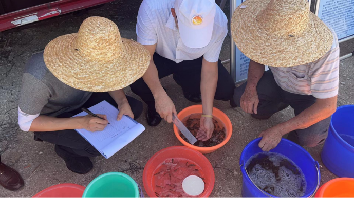 2022年6月28日,海洋生物资源修复工作在惠东县铁涌镇考洲洋赤岸码头开展,根据考洲洋海域海洋生物资源调查情况,结合人工种苗批量繁育季节的要求,专家正在详细勘验放流鱼种、鱼苗检疫、健康情况等,避免对放流水域造成不良影响。