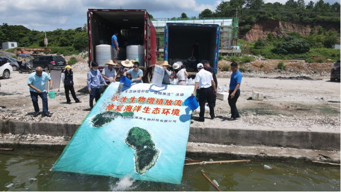 本次共增殖放流黑鲷6万尾、黄鳍鲷6万尾、斑节对虾50万对,以此来丰富太平岭核电周边的海洋生物资源。