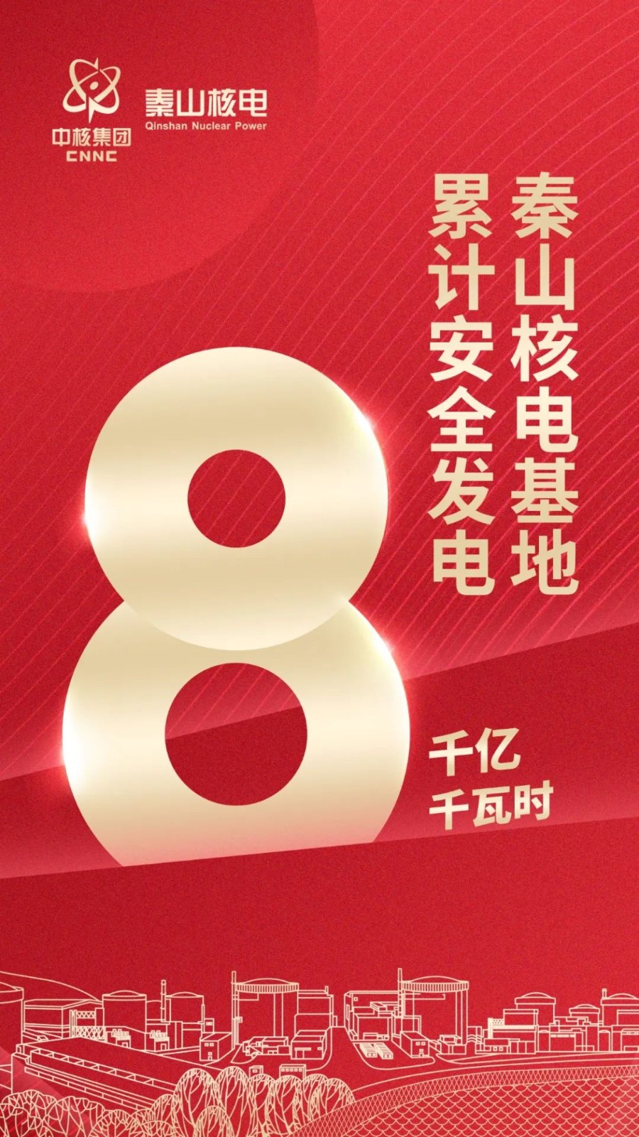12月8日18点18分,中核集团旗下中国核电控股,我国大陆核电运行时间最久、机组数量最多、堆型最丰富的核电基地——秦山核电基地累计发电8000亿千瓦时,安全运行11680天。这是中核集团牢记习近平总书记嘱托,积极贯彻落实“四个革命、一个合作”能源安全新战略和“八八战略”的具体举措,为我国能源保供提供了坚实保障。