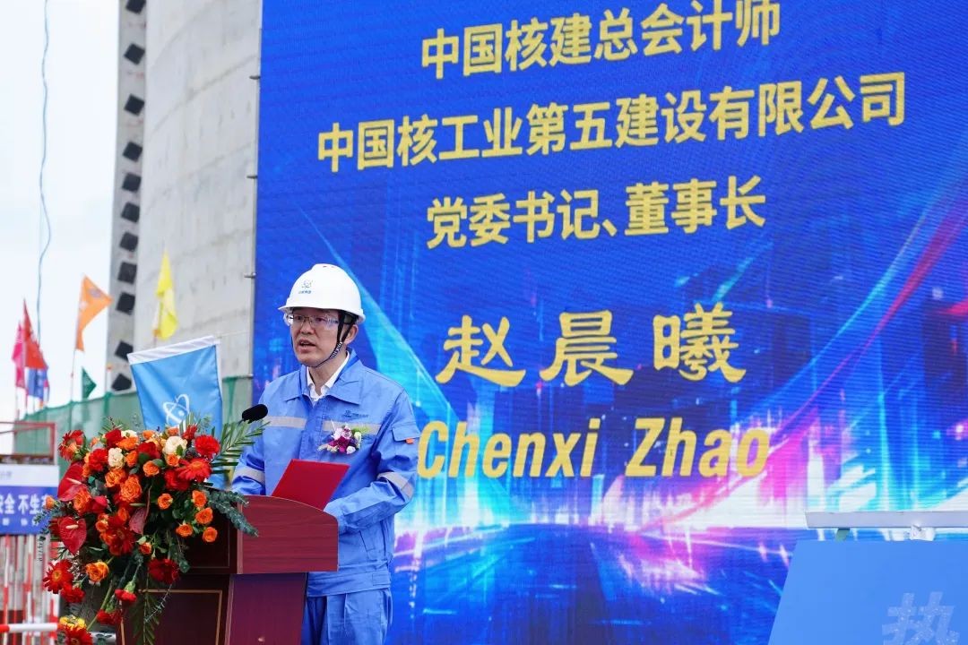中国核建总会计师,中核五公司党委书记、董事长赵晨曦出席顶升仪式并致辞。赵晨曦向巴斯夫一体化基地(广东)有限公司表示热烈的祝贺,对大力支持项目建设的各级单位、各有关部门表示衷心的感谢,对奋战在施工一线的各单位员工表示慰问。他指出中核五公司将始终践行强核筑梦,创新未来的企业宗旨,始终秉承化工拓荒优良传统,始终保持着强烈的企业责任感与使命担当,以优秀的业绩回报业主方的信任。