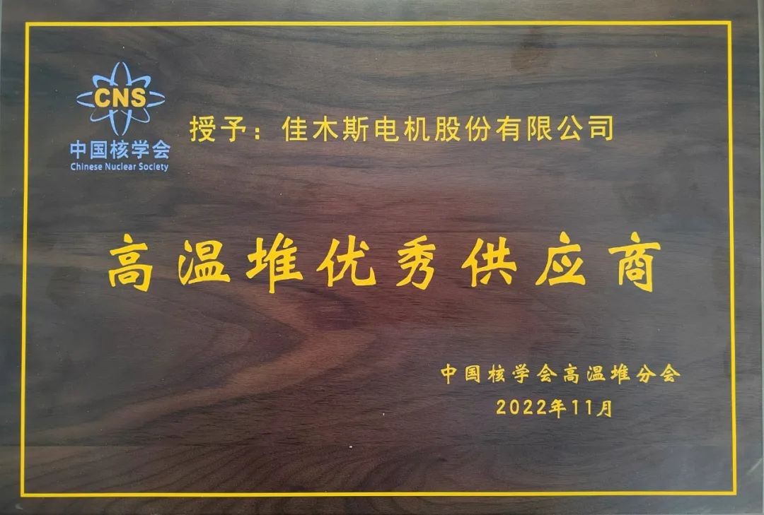 哈电集团佳电股份获评高温堆优秀供应商荣誉称号