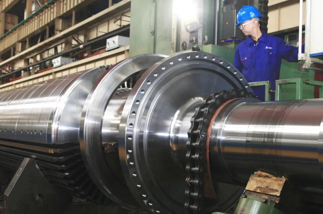 哈电集团电机公司操作者正在加工高温气冷堆汽轮发电机工件