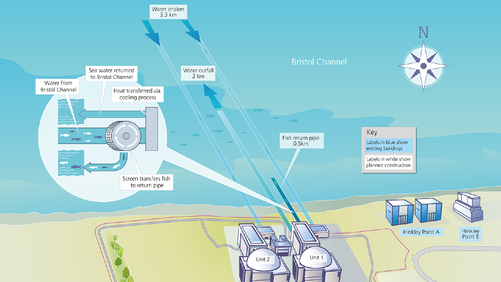 创建新栖息地以帮助保护鱼类种群取代了安装声学鱼类威慑系统的提议。该系统将使用 280 个扬声器,在工厂计划的 60 年运营期间持续发出巨大的噪音。该公司表示,此类系统对鼠海豚、海豹、鲸鱼和其他物种的影响尚不清楚,并补充说,独立研究表明,该系统对受保护鱼类的潜在好处非常小。它还会危及布里斯托尔海峡快速流动的潮汐中潜水员的安全。