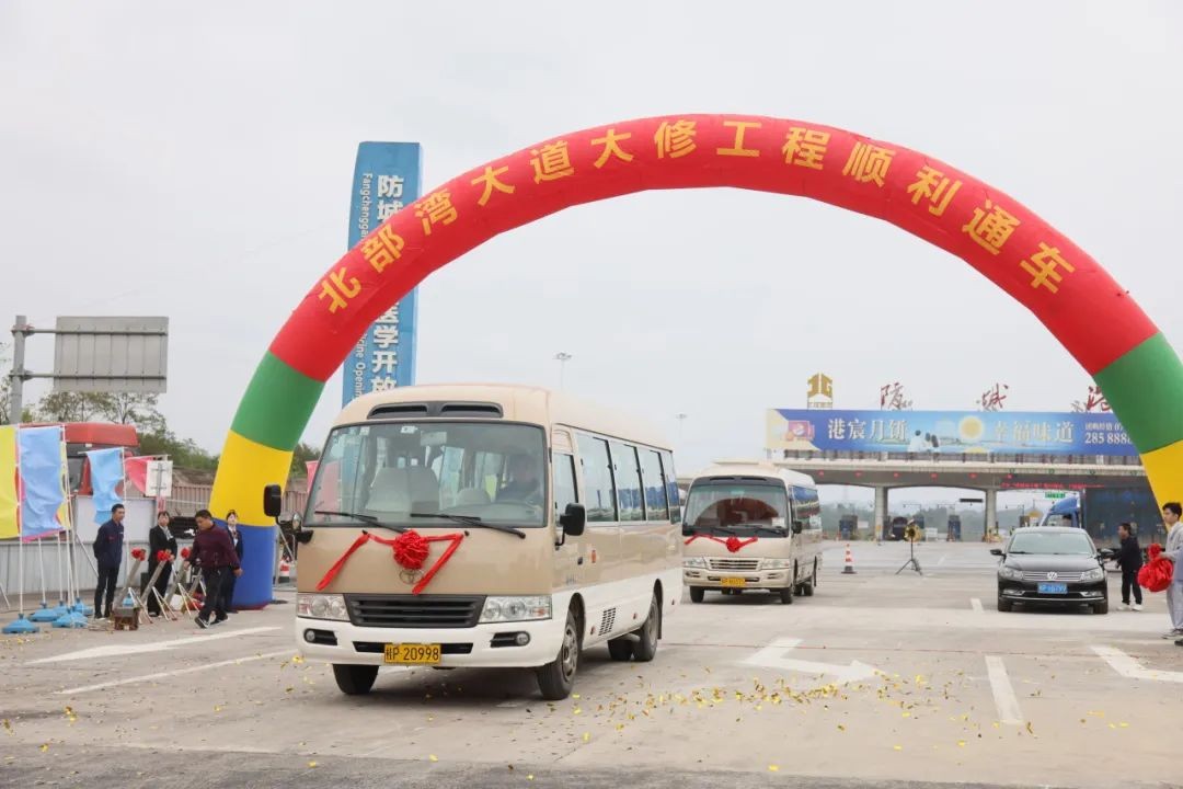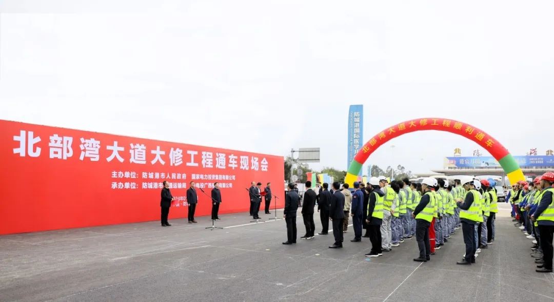 1月10日,北部湾大道大修工程正式通车。防城港市人民政府副市长罗真出席通车现场会并宣布通车,市人民政府副秘书长程刚,国家电投广西核电党委书记、董事长丁维民,党委副书记、总经理黄飞,党委委员、副总经理戴中恒参加活动,防城港市交通运输局局长谢电主持活动。