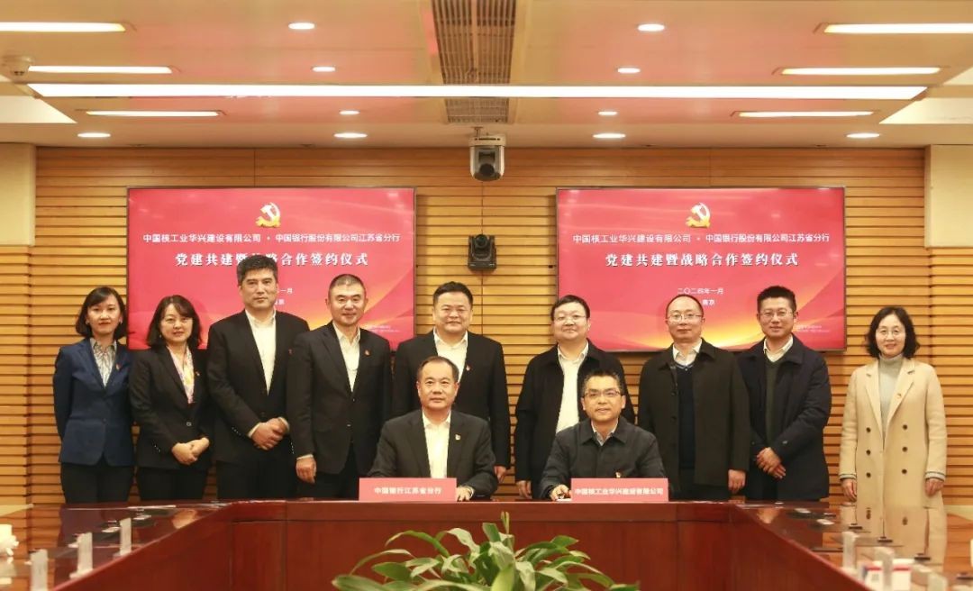 1月17日,中核华兴与中国银行江苏省分行举行党建共建暨战略合作协议签约仪式。在中核华兴党委书记、董事长周博与中国银行江苏省分行党委书记、行长刘小宇见证下,中核华兴总会计师颜志勇、中国银行江苏省分行副行长程祥代表双方签订协议。