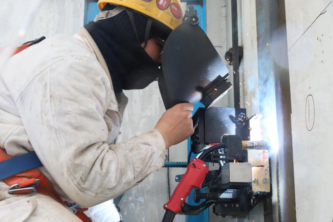 近年来,MAG自动焊技术已经成为建设领域的一种关键焊接技术。为打造轻便小巧、性能优越的自动焊设备,科研团队对设备及小车轨道进行了轻量化设计,该设备仅重9kg,单手便可提起行走,并采用电池进行供电,解决了突发情况下设备坠落、焊缝中断的风险,同时搭配磁吸轮履式爬行机构,移动倒运高效便捷,整体焊接效率提升3倍以上,焊接质量得到极大提高。