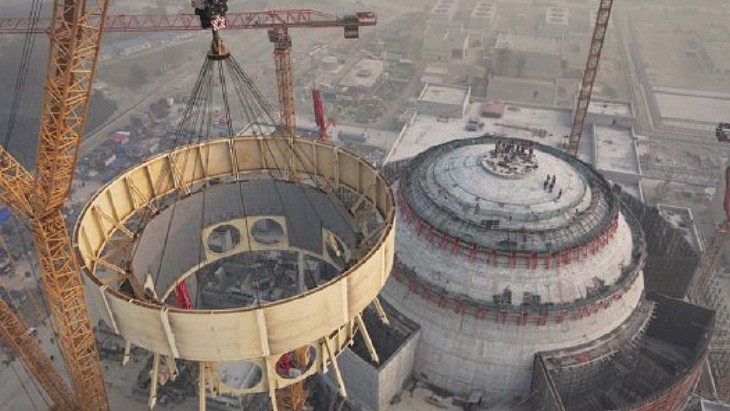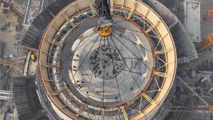该过程涉及安装两个部分(最大允许偏差为 1 厘米),高度为 64.5 米,使反应堆建筑的总高度达到 74.85 米。