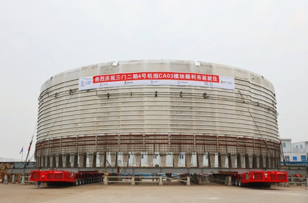 1月28日9时26分,三门核电4号机组CA03模块顺利吊装就位,为后续安全壳内11305房间的形成创造了良好先决条件。